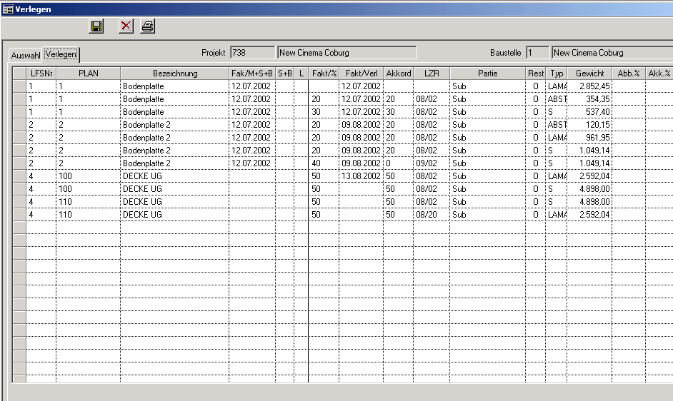 Zusätzlich lassen sich auf Wunsch jeweils Aufmaßlisten erstellen, die zur Erfassung der verlegten Gewichte mit auf die Baustelle gegeben werden können.